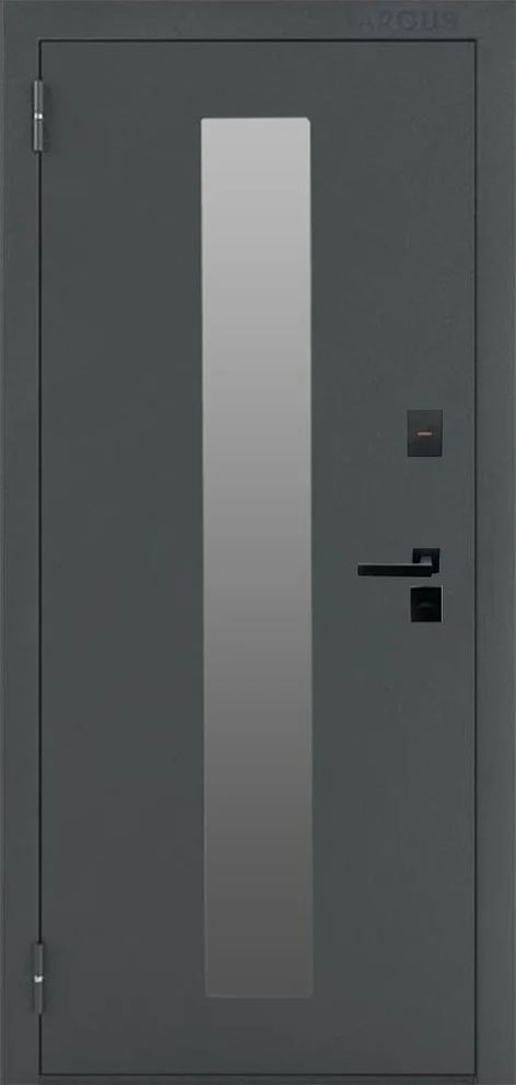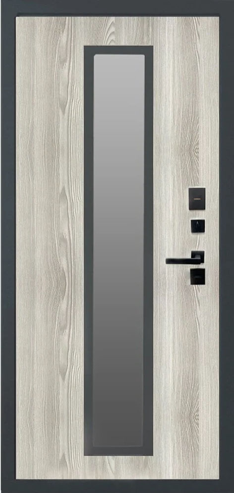 - безрамочный стеклопакет двухкамерный (48*200*1670), расположен по центру полотна, тонировка - серебро (зеркальная).