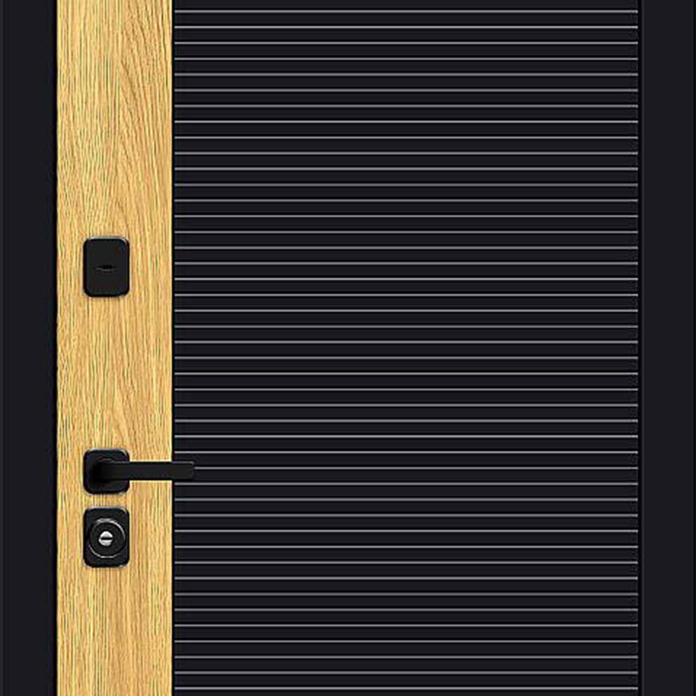 - дизайн внешней стороны: комбинированная фрезерованная панель толщиной 12 мм с отделкой винилом, цвета: "Black Shell-Wotan Oak";