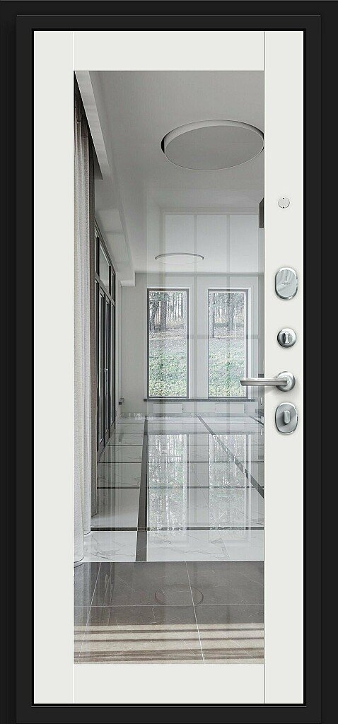 - дизайн внутренней стороны: декоративная панель толщиной 22 мм с отделкой Эко Шпоном и вставками из зеркала Reflex, цвет - 4 варианта на выбор;
