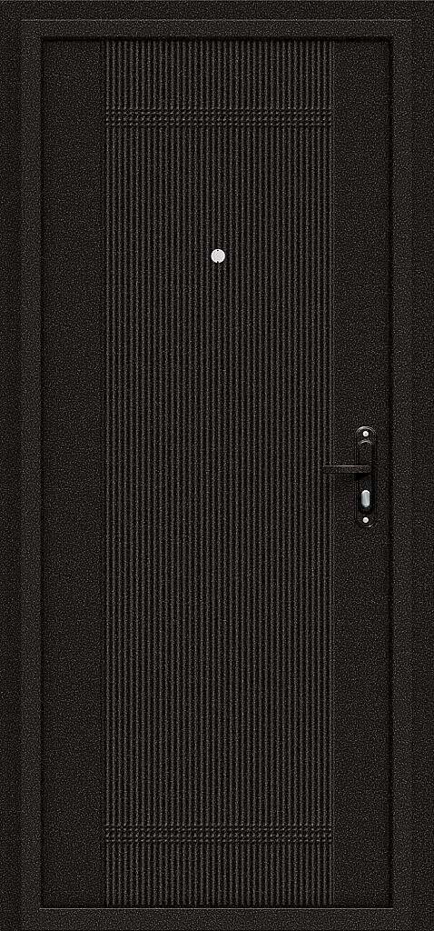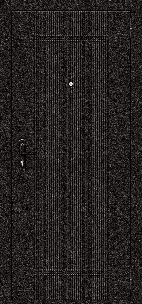 Входная дверь с наружным открыванием изготовлена по "бесшовной" технологии из высокопрочной оцинкованной холоднокатаной стали.