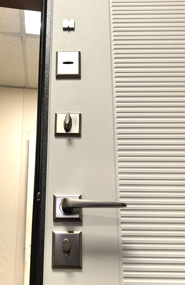 - ручка двери: нажимная усиленная, раздельная, имеет стойкое защитное покрытие, повышенный ресурс эксплуатации.