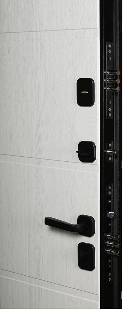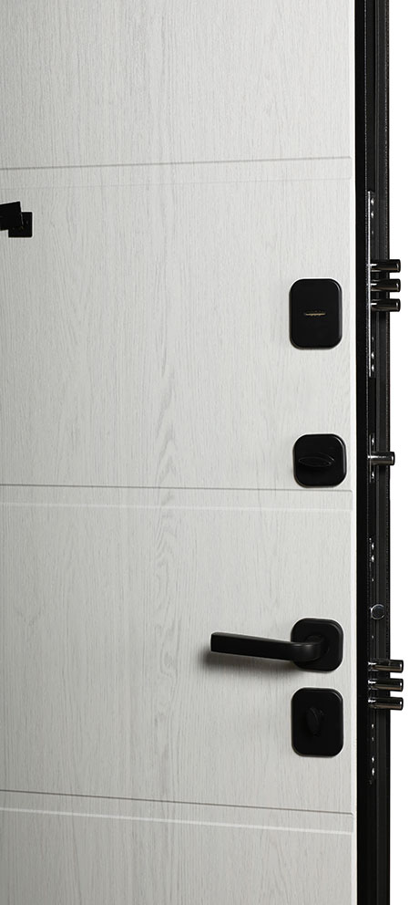 - основной замок: цилиндрового типа, 5 ключей, цилиндр типа ключ-вертушка, броненакладка;
