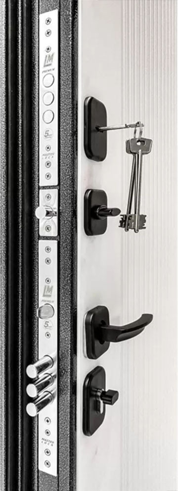 - дополнительный замок "ДК" сувальдного типа, 4-х оборотный (аналог КАLE 257);