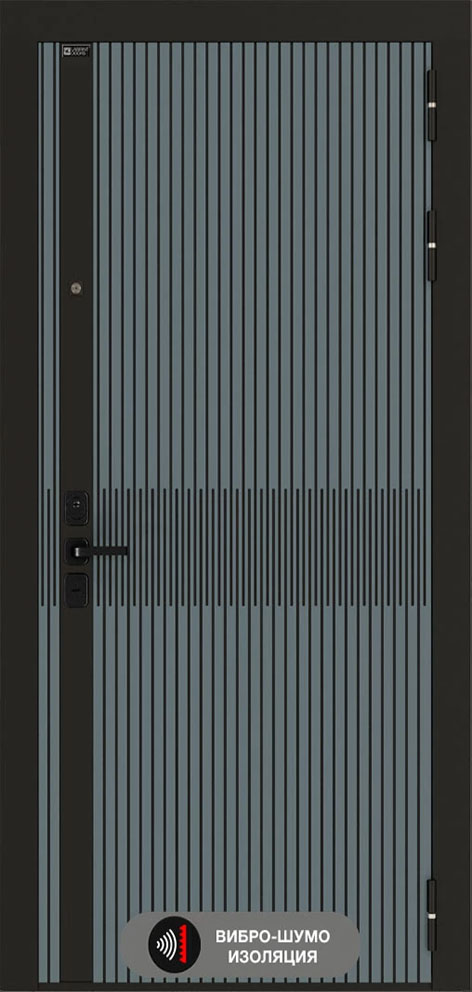 - внешняя отделка: МДФ панель 10 мм, цвет "Velutto Verde" (светло-серый) с патиной и вставкой из металла в цвет наличника;